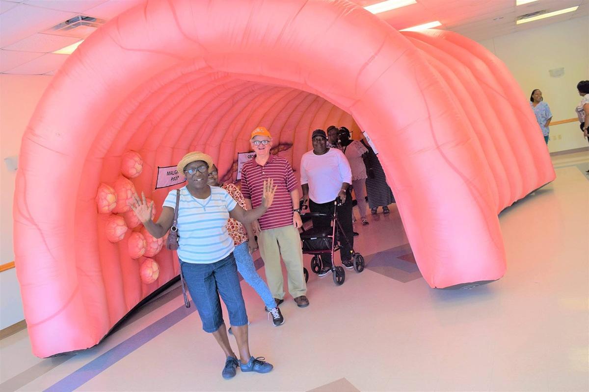 Even though colon cancer is serious business, Southeastern Med discovered that many people are more open to education about this disease when presented in a less-scary manner. That's what brought about their commissioning Landmark Creations to develop a cold-air, colon-shaped inflatable tunnel.