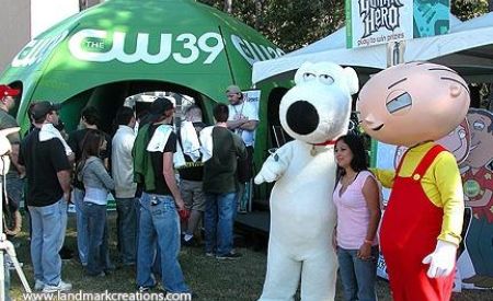 Television (TV) station promotions are about more than simply gaining new viewers. When marketing for TV stations, a primary goal is to build a relationship within the community. Events such as the ones below have always opened an opportunity for on-air personalities to help put a personal touch on an otherwise distant medium. Want more creative ideas for your television station or newspaper promotions? Visit our tv & newspaper marketing inflatables gallery.