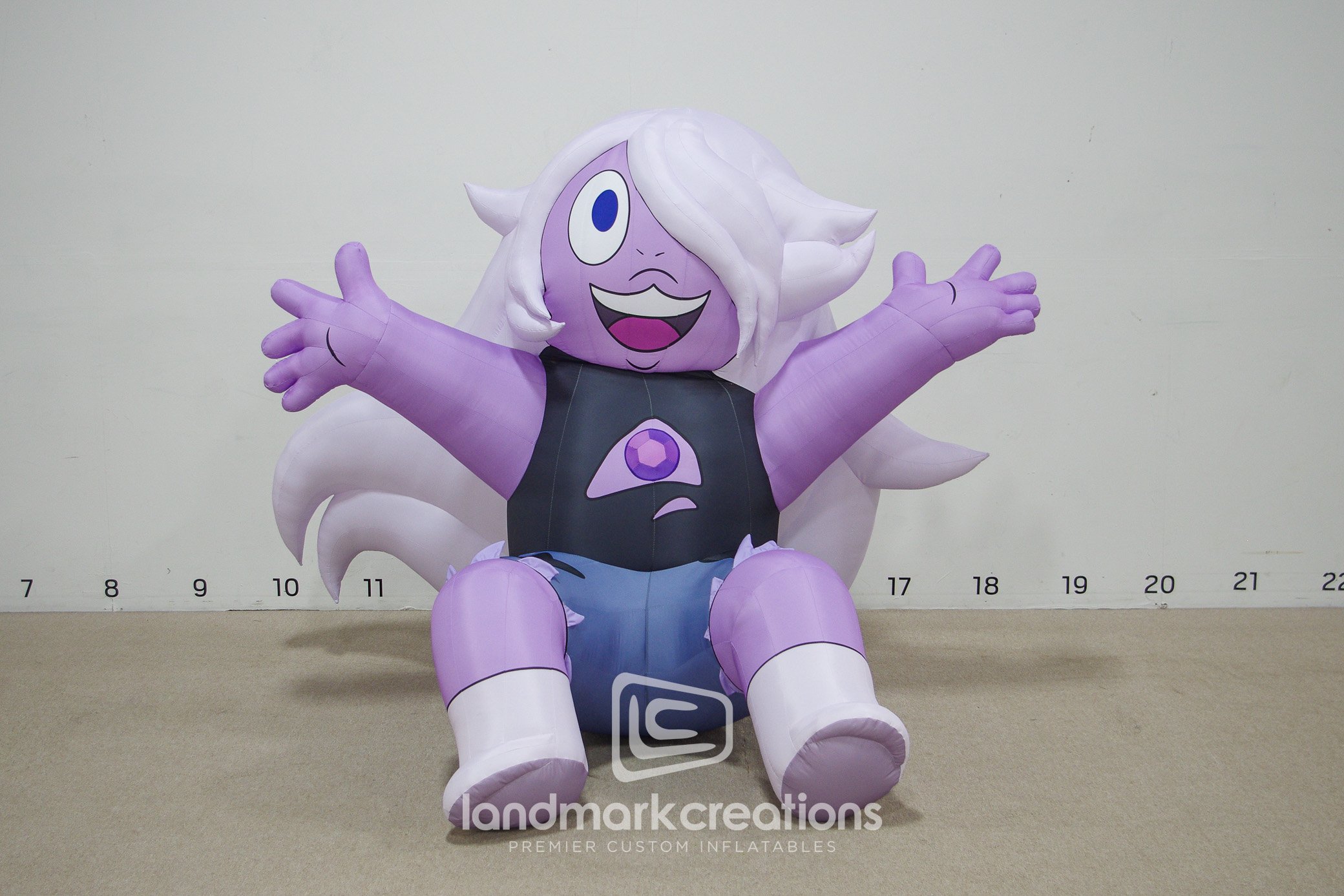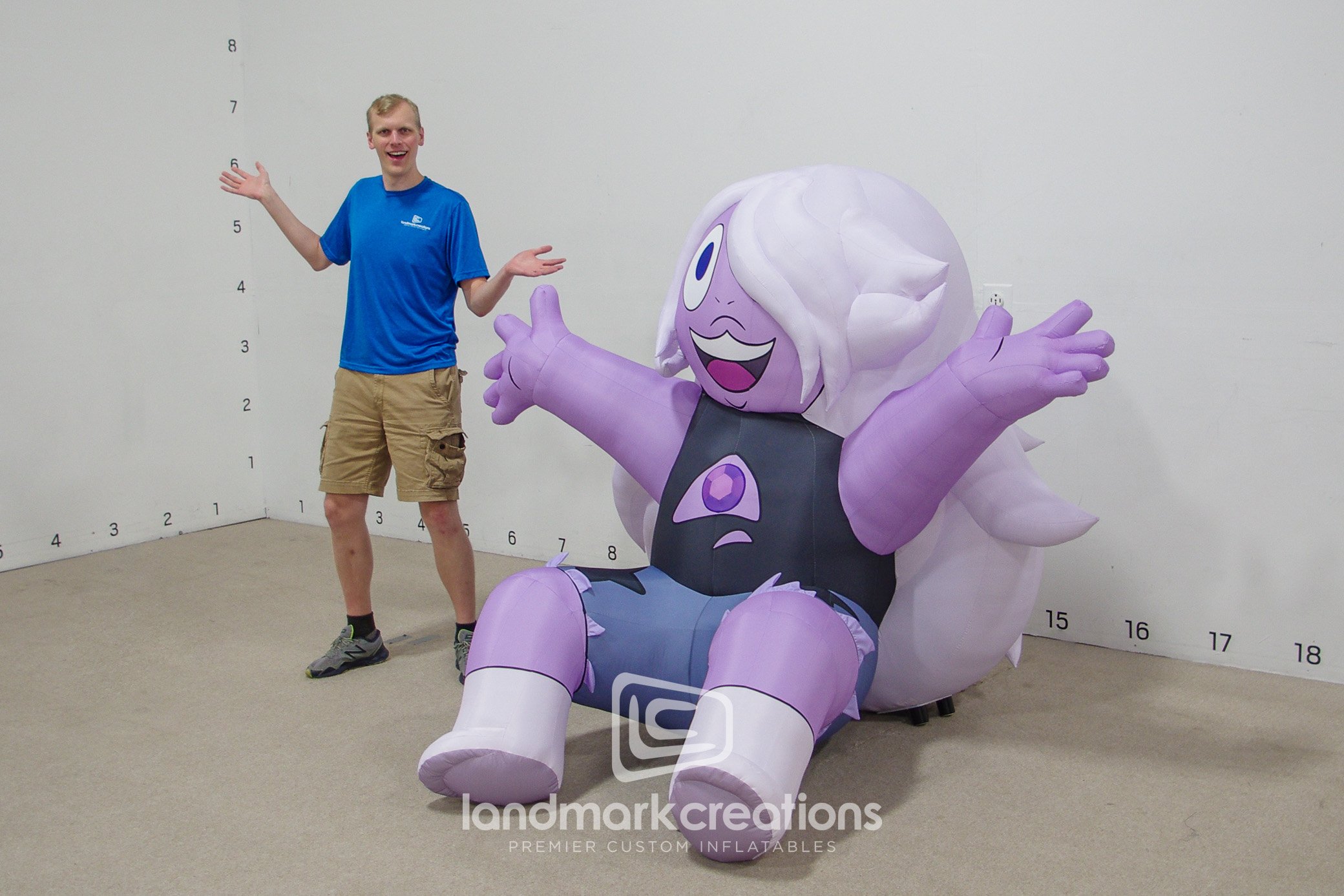 This giant inflatable Amethyst from Steven Universe was included in a set of characters Cartoon Network displayed on their karaoke booth at Comic-Con in San Diego. Custom inflatable mascots are a natural fit for brands looking to connect with crowds at large-scale events. Because of their large size and visual appeal, giant inflatables also make great photo opps that fans love to share on social media, extending the reach of your brand or message beyond the event.