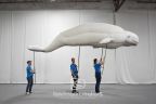 This custom inflatable Beluga Whale, Juno, was designed for Mystic Aquarium's parade display. At 20 feet in length, it is supported by up to six people, bringing a captivating marine presence to events. This unique parade balloon reflects our commitment to creating lifelike, larger-than-life inflatables for museums, aquariums, and zoos, helping raise awareness for ocean conservation.