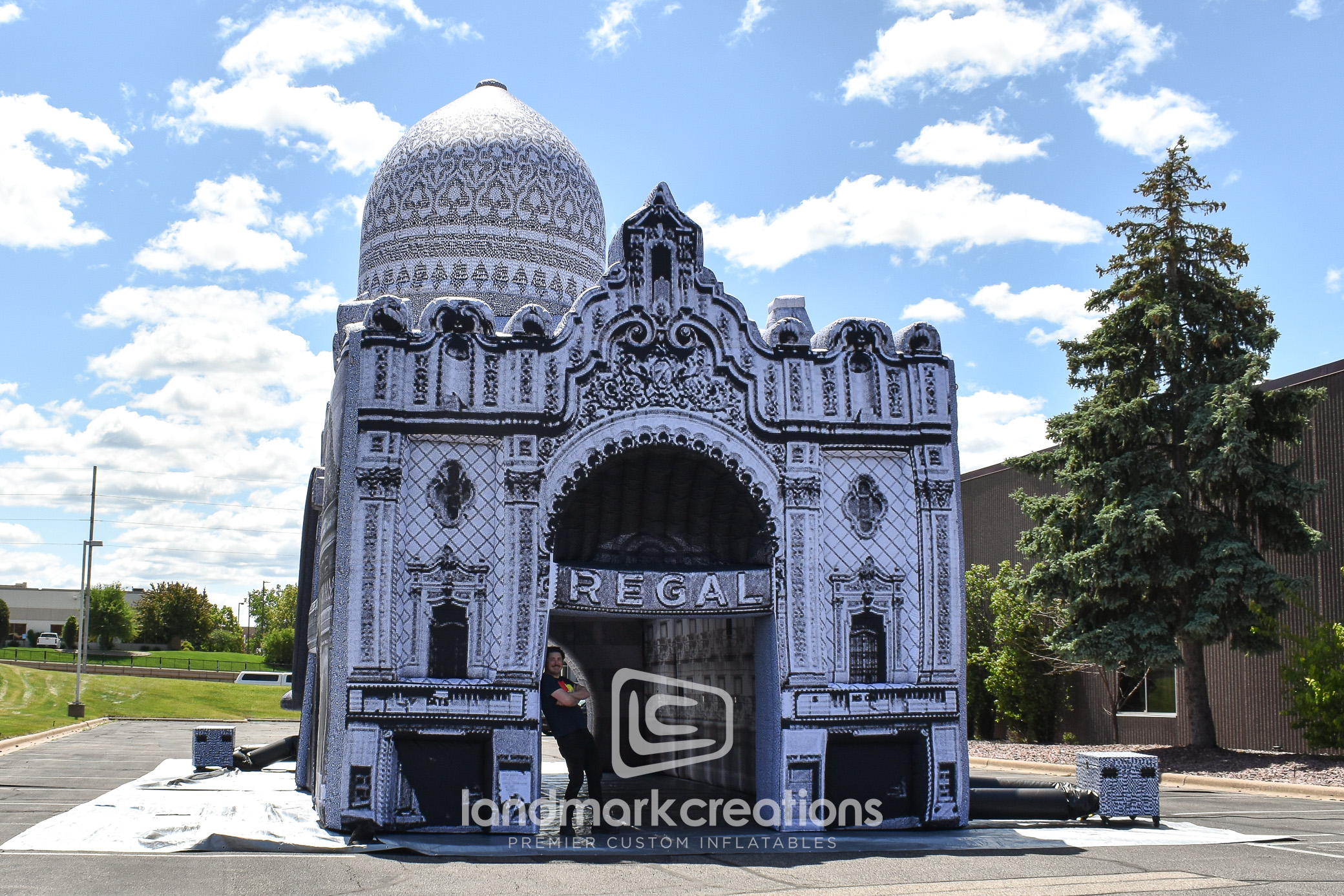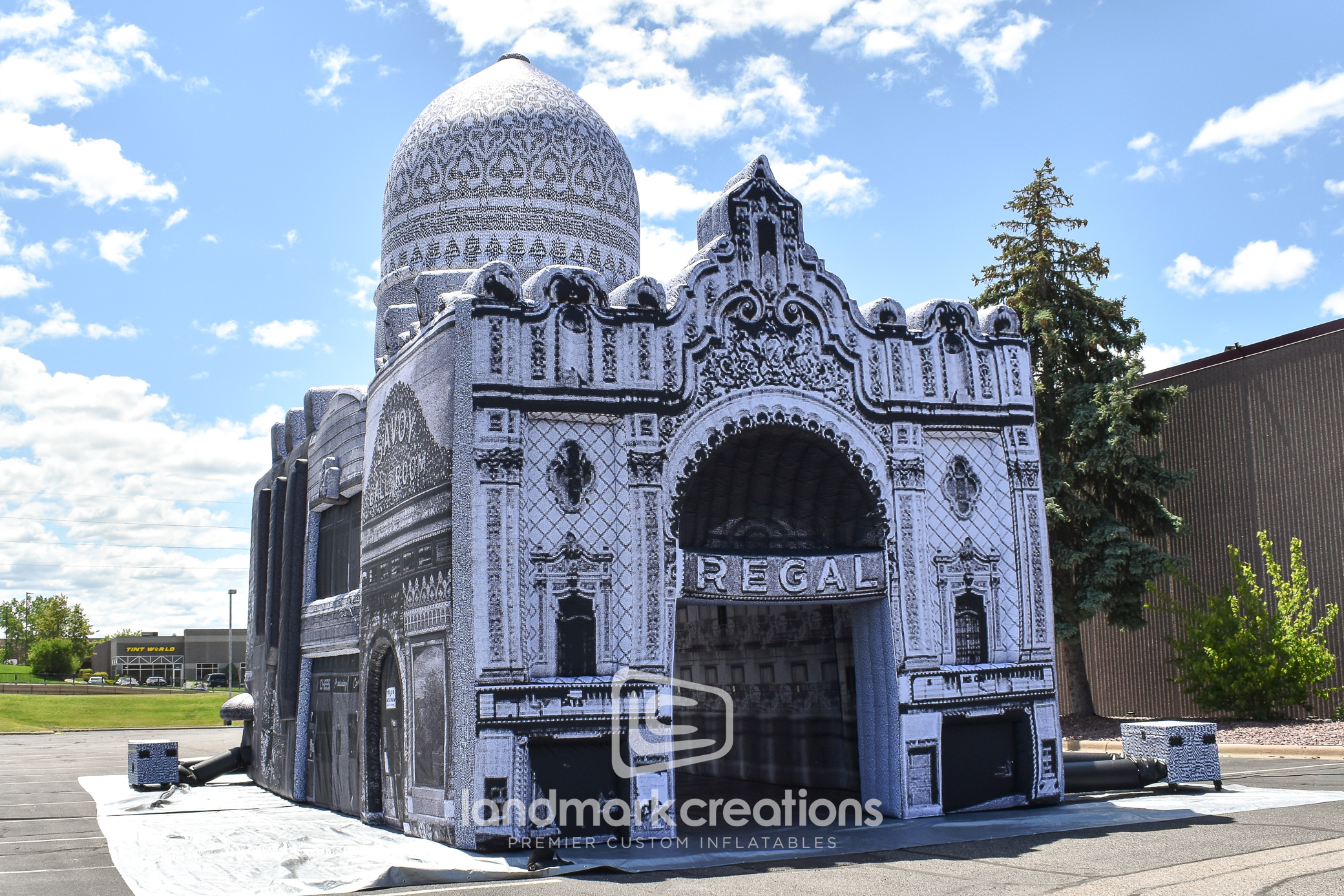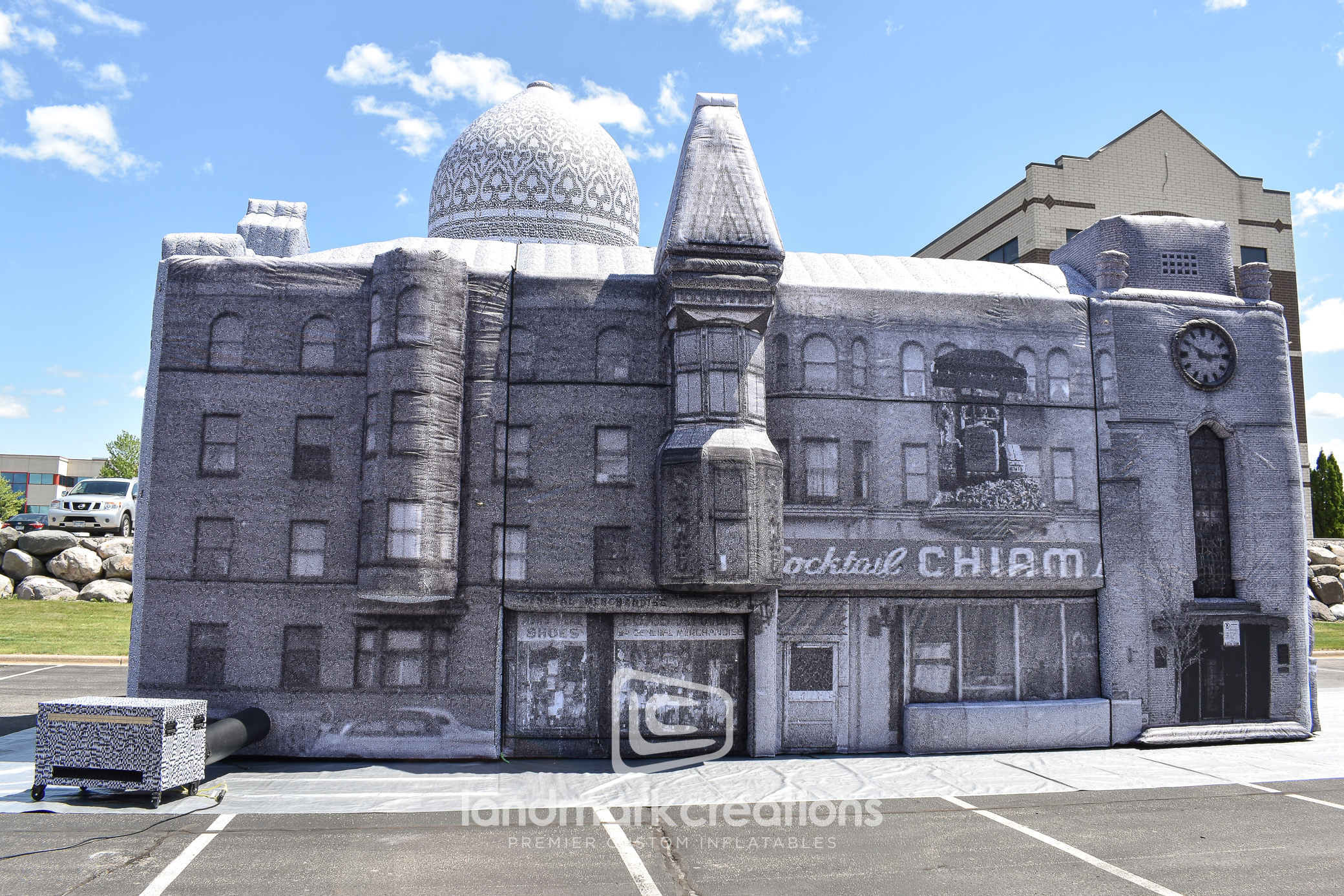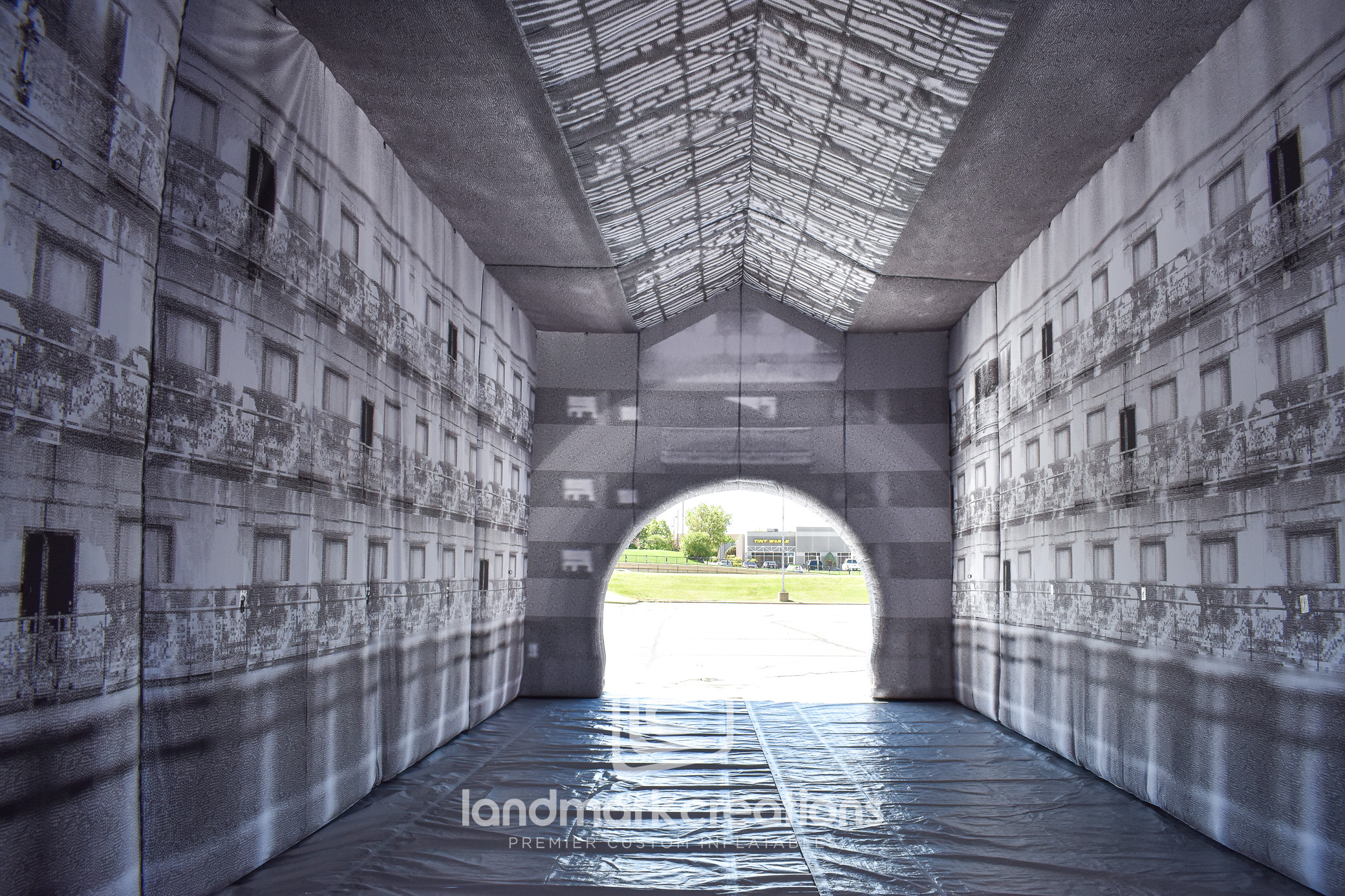 Landmark Creations partnered with Floating Museum to bring a piece of Chicago’s history back to life. This large-scale inflatable replica reimagines a historic Romanesque building once lost in the Bronzeville neighborhood. Designed for traveling exhibitions, the structure serves as both a striking visual and an immersive venue for performances, art exhibits, and educational programming. With interior attachment points for lighting and displays, the inflatable becomes a flexible environment for storytelling that connects communities to the history and architecture of Bronzeville.