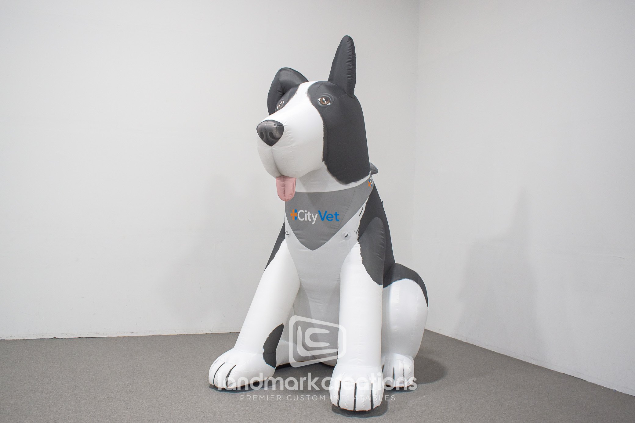 CityVet’s charming inflatable dog with one ear playfully flopped down and a stylish gray bandana featuring the CityVet logo catches eyes and hearts wherever it goes. Mascots like this inflatable pup go beyond mere visual appeal—they forge emotional connections with viewers, leaving a lasting impression of the brand. In additions to being attention-grabbing, inflatable mascots pack small, making them easy to manage, transport, and store between events.