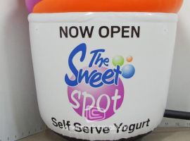 Cocoaberry Frozen Yogurt celebrated their grand opening and attracted new customers with this giant, eye-catching inflatable dessert cup placed on their rooftop! Inflatable rooftop advertisements are a great way to increase buzz and help customers find your location.