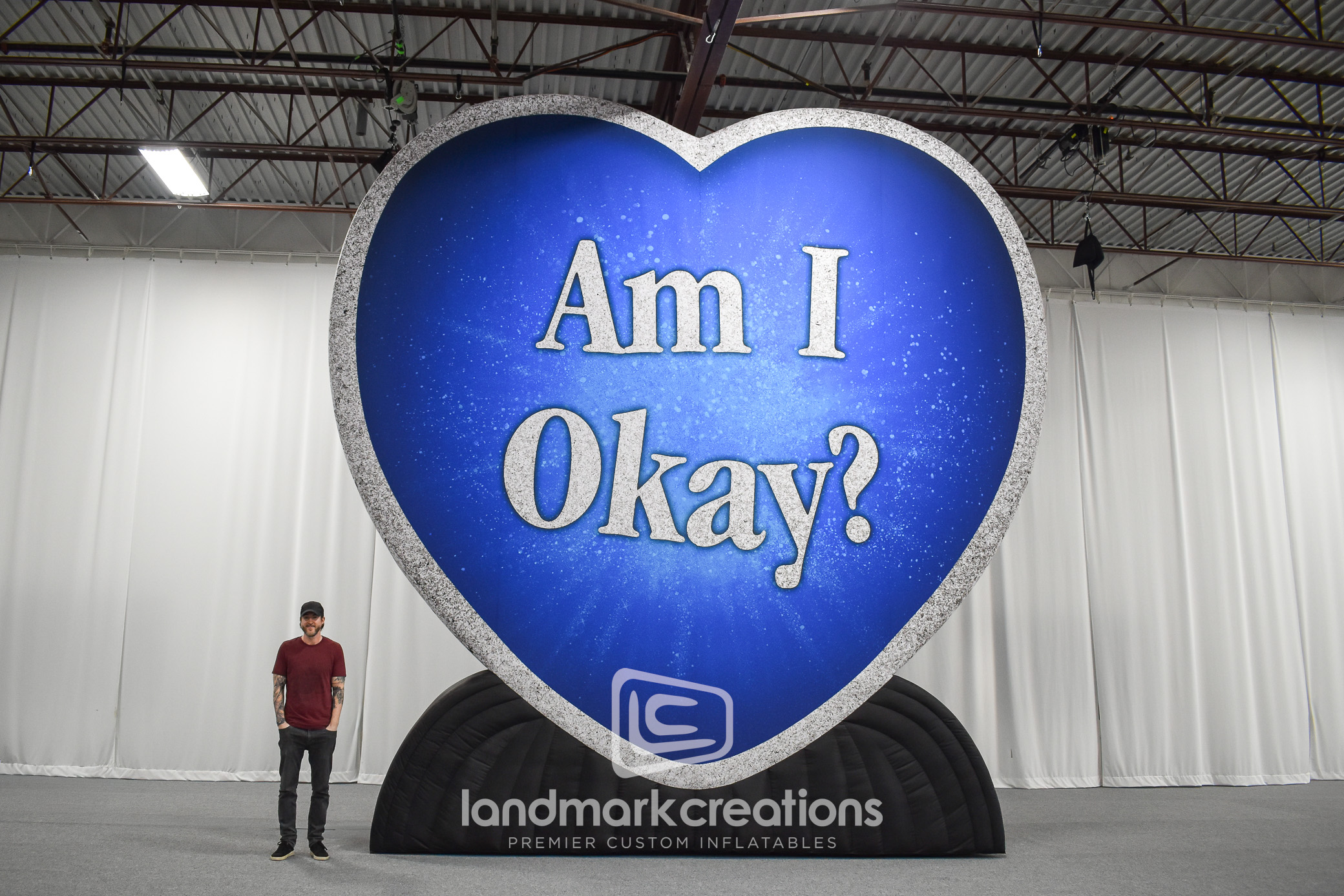 To support the Megan Moroney tour, AEG Presents turned to Landmark Creations for a double‑sided custom inflatable billboard designed as a fan photo opportunity. This giant heart display—printed with the words “Am I Okay?” from her title track—offers a powerful visual tied to her music. Built on a sturdy inflatable pedestal, this inflatable replica moves from city to city, giving fans a chance to engage and share moments that resonate with the artist’s work