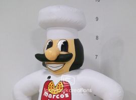 Pizza Fabbrica, a New York pizza restaurant, shows off their inflatable chef character outdoors to attract hungry customers inside! Easy to inflate and manage, this chef balloon character will bring lots of attention to their restaurant.