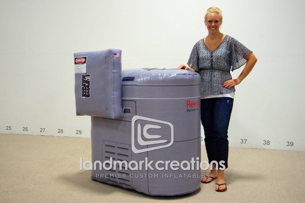 Reed Machinery turned their 3-Die Thread Rolling Machine into a custom inflatable model to display at trade shows. The inflatable replica, designed to fit inside the booth area, attracts attention and sparks conversation with visitors!