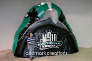 This is what most people think of when inflatables come to mind. Available in custom sizes and designs, cold-air inflatables can be mounted on the ground, on rooftops, indoors or at any fixed location. They inflate with the aid of a blower system in just minutes bringing your product replica, mascot, logo or sports tunnel to life.