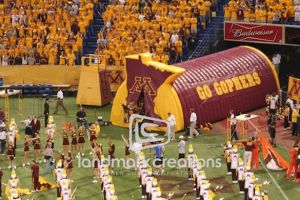 This is what most people think of when inflatables come to mind. Available in custom sizes and designs, cold-air inflatables can be mounted on the ground, on rooftops, indoors or at any fixed location. They inflate with the aid of a blower system in just minutes bringing your product replica, mascot, logo or sports tunnel to life.
