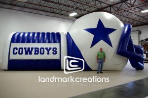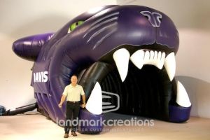 This is what most people think of when inflatables come to mind. Available in custom sizes and designs, cold-air inflatables can be mounted on the ground, on rooftops, indoors or at any fixed location. They inflate with the aid of a blower system in just minutes bringing your product replica, mascot, logo or sports tunnel to life.