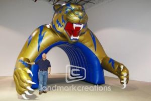 This is what most people think of when inflatables come to mind. Available in custom sizes and designs, cold-air inflatables can be mounted on the ground, on rooftops, indoors or at any fixed location. They inflate with the aid of a blower system in just minutes bringing your product replica, mascot, logo or sports tunnel to life.