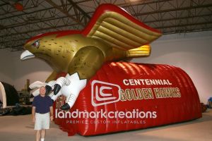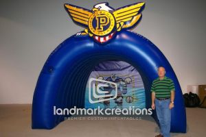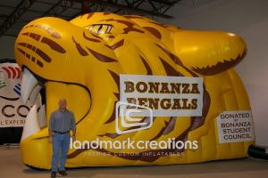 This is what most people think of when inflatables come to mind. Available in custom sizes and designs, cold-air inflatables can be mounted on the ground, on rooftops, indoors or at any fixed location. They inflate with the aid of a blower system in just minutes bringing your product replica, mascot, logo or sports tunnel to life.