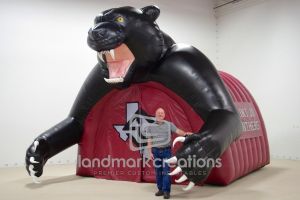 This is what most people think of when inflatables come to mind. Available in custom sizes and designs, cold-air inflatables can be mounted on the ground, on rooftops, indoors or at any fixed location. They inflate with the aid of a blower system in just minutes bringing your product replica, mascot, logo or sports tunnel to life.
