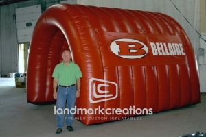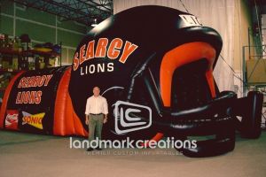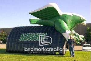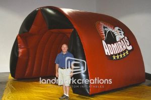 This is what most people think of when inflatables come to mind. Available in custom sizes and designs, cold-air inflatables can be mounted on the ground, on rooftops, indoors or at any fixed location. They inflate with the aid of a blower system in just minutes bringing your product replica, mascot, logo or sports tunnel to life.