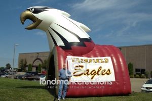 This is what most people think of when inflatables come to mind. Available in custom sizes and designs, cold-air inflatables can be mounted on the ground, on rooftops, indoors or at any fixed location. They inflate with the aid of a blower system in just minutes bringing your product replica, mascot, logo or sports tunnel to life.