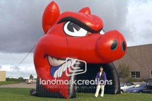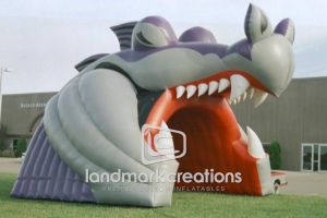 This is what most people think of when inflatables come to mind. Available in custom sizes and designs, cold-air inflatables can be mounted on the ground, on rooftops, indoors or at any fixed location. They inflate with the aid of a blower system in just minutes bringing your product replica, mascot, logo or sports tunnel to life.