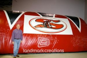 This is what most people think of when inflatables come to mind. Available in custom sizes and designs, cold-air inflatables can be mounted on the ground, on rooftops, indoors or at any fixed location. They inflate with the aid of a blower system in just minutes bringing your product replica, mascot, logo or sports tunnel to life.