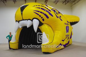 This is what most people think of when inflatables come to mind. Available in custom sizes and designs, cold-air inflatables can be mounted on the ground, on rooftops, indoors or at any fixed location. They inflate with the aid of a blower system in just minutes bringing your product replica, mascot, logo or sports tunnel to life.