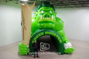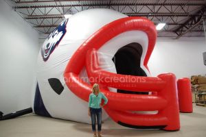 This is what most people think of when inflatables come to mind. Available in custom sizes and designs, cold-air inflatables can be mounted on the ground, on rooftops, indoors or at any fixed location. They inflate with the aid of a blower system in just minutes bringing your product replica, mascot, logo or sports tunnel to life.