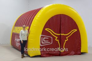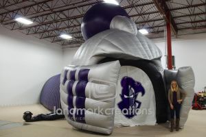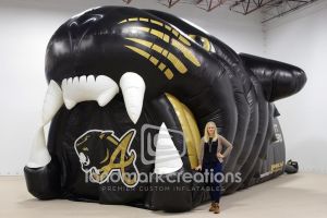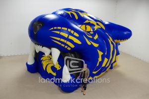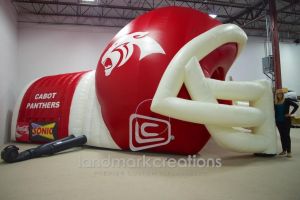 This is what most people think of when inflatables come to mind. Available in custom sizes and designs, cold-air inflatables can be mounted on the ground, on rooftops, indoors or at any fixed location. They inflate with the aid of a blower system in just minutes bringing your product replica, mascot, logo or sports tunnel to life.