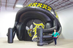 This is what most people think of when inflatables come to mind. Available in custom sizes and designs, cold-air inflatables can be mounted on the ground, on rooftops, indoors or at any fixed location. They inflate with the aid of a blower system in just minutes bringing your product replica, mascot, logo or sports tunnel to life.