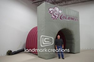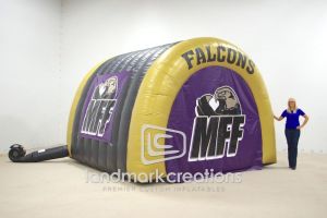 This is what most people think of when inflatables come to mind. Available in custom sizes and designs, cold-air inflatables can be mounted on the ground, on rooftops, indoors or at any fixed location. They inflate with the aid of a blower system in just minutes bringing your product replica, mascot, logo or sports tunnel to life.