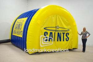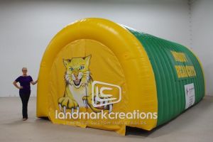 This is what most people think of when inflatables come to mind. Available in custom sizes and designs, cold-air inflatables can be mounted on the ground, on rooftops, indoors or at any fixed location. They inflate with the aid of a blower system in just minutes bringing your product replica, mascot, logo or sports tunnel to life.