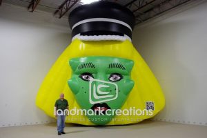 This is what most people think of when inflatables come to mind. Available in custom sizes and designs, cold-air inflatables can be mounted on the ground, on rooftops, indoors or at any fixed location. They inflate with the aid of a blower system in just minutes bringing your product replica, mascot, logo or sports tunnel to life.