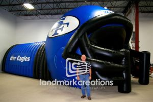 This is what most people think of when inflatables come to mind. Available in custom sizes and designs, cold-air inflatables can be mounted on the ground, on rooftops, indoors or at any fixed location. They inflate with the aid of a blower system in just minutes bringing your product replica, mascot, logo or sports tunnel to life.