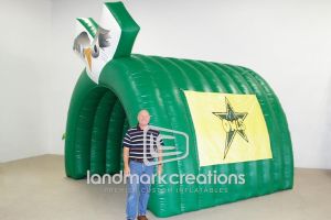 This is what most people think of when inflatables come to mind. Available in custom sizes and designs, cold-air inflatables can be mounted on the ground, on rooftops, indoors or at any fixed location. They inflate with the aid of a blower system in just minutes bringing your product replica, mascot, logo or sports tunnel to life.