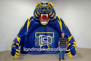 This is what most people think of when inflatables come to mind. Available in custom sizes and designs, cold-air inflatables can be mounted on the ground, on rooftops, indoors or at any fixed location. They inflate with the aid of a blower system in just minutes bringing your product replica, mascot, logo or sports tunnel to life.