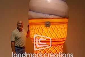 Delight audiences with custom inflatable ice cream replicas, including oversized cones, branded boxes, and unique ice cream-themed designs. Perfect for summer events, festivals, and store promotions, these inflatables bring a fun, appetizing touch that captures attention and drives brand engagement. Crafted to showcase realistic textures, vibrant colors, and branding elements, Landmark Creations’ inflatable ice cream replicas create memorable photo opportunities and add a playful twist to any event.