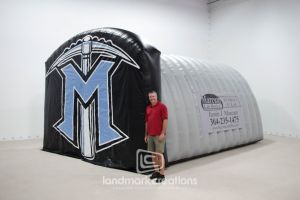 Landmark Creations can build custom inflatable tunnels specifically for you using your mascot, school colors, or theme.