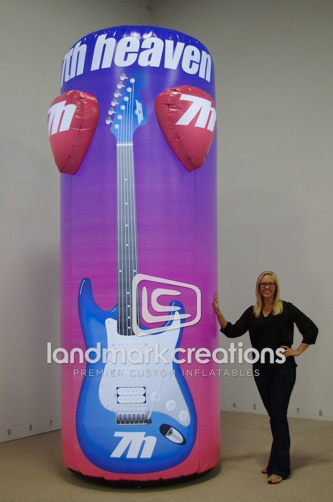 Cover band 7th Heaven uses their custom inflatable pylon at concerts and live shows. This internally lit inflatable pylon features digitally printed electric guitars and guitar picks adding a strong visual to both day and night events.