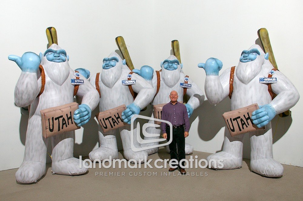 Custom-designed inflatable mascots, like these giant inflatable abdominal snowmen yetis, are a fun way to gain attention from kids and adults alike at special events.