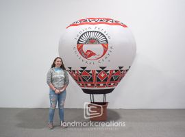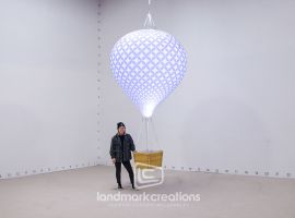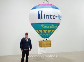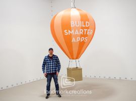 NDSC suspended this hot air balloon replica in their exhibit space at HIMSS. Hot air balloon shapes naturally attract attention, and they can make wonderful location devices at shows. We offer a variety of internal lighting systems and basket options to match your branding and the style of your exhibit space.