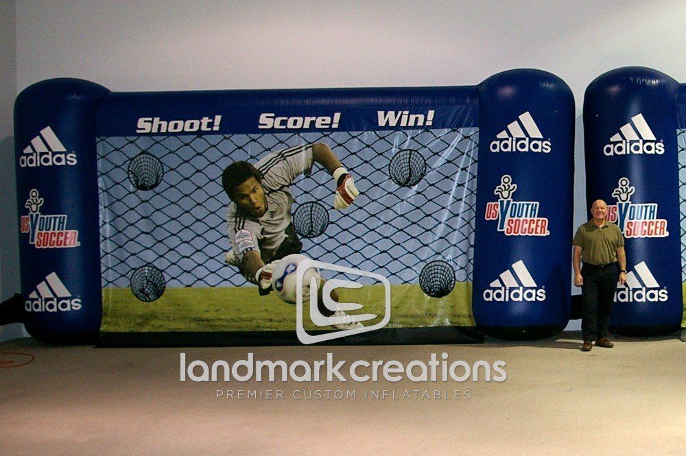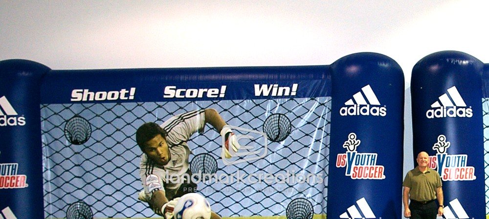 Shoot & score! A fun addition to the 2010 Workshop and Awards Gala for the U.S. Youth Soccer Tournaments, this inflatable Adidas soccer cage drew crowds of participants at the event!