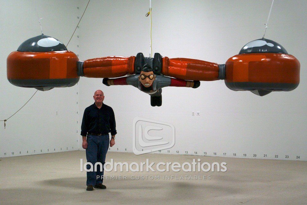 Cartoon Network does it again! Turning a popular cartoon character into a custom inflatable always adds drama to events! Inflatable Rex, a character from Adventure Time, was suspended from the ceiling for added impact.