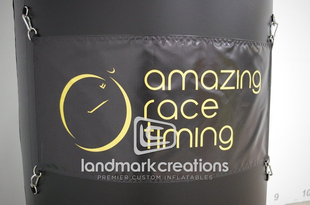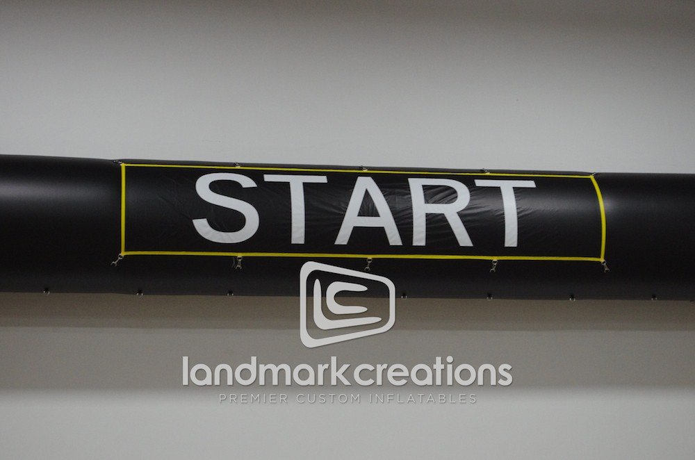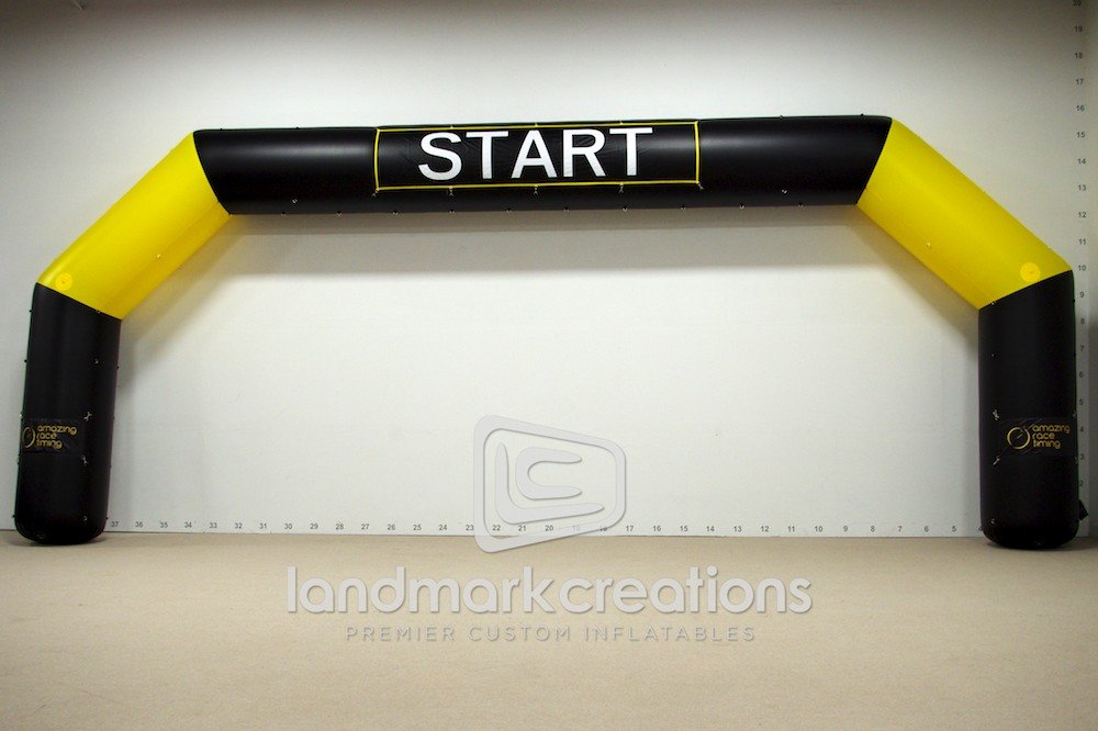Amazing Race Timing, a professional event timing and planning service, uses this giant, yellow and black archway as a visually attractive start / finish line.
