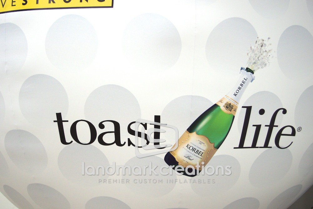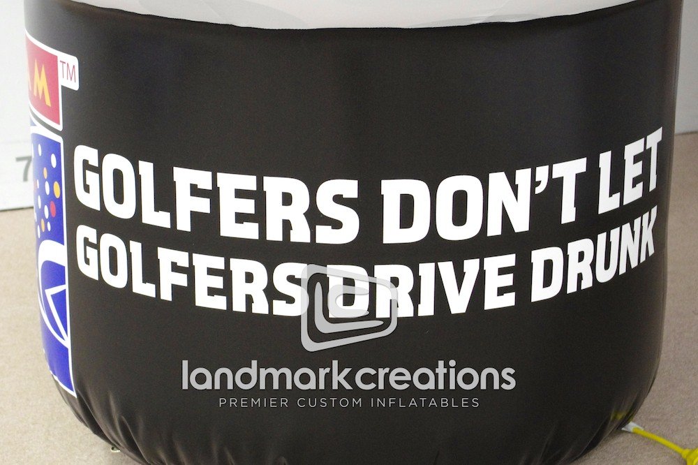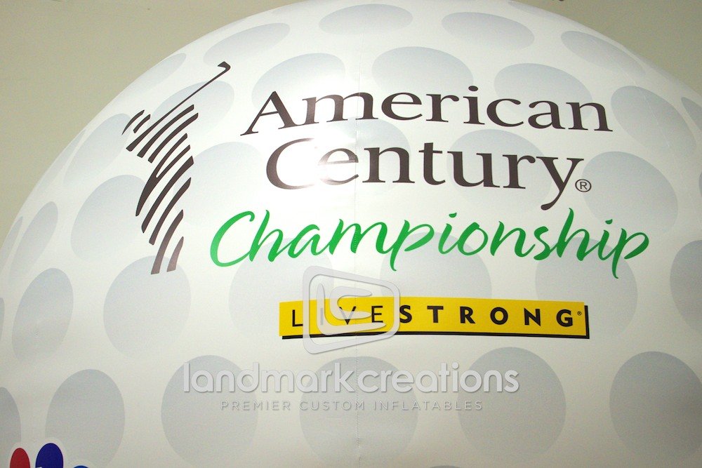 This inflatable golf ball was designed for the 23rd Annual American Century Championship at Edgewood Tahoe Golf Course. Those who attended the event signed the giant golf ball in support of Korbel's Responsibility Challenge.