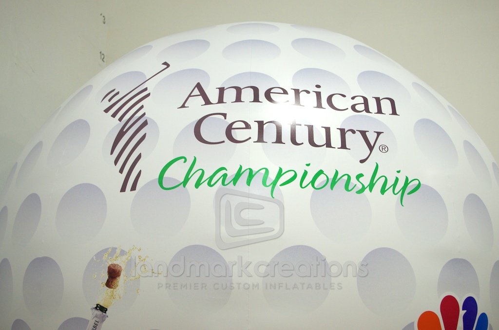 This inflatable golf ball was designed for the American Century Championship at Edgewood Tahoe Golf Course. Those who attended the event signed the giant golf ball in support of Korbel's Responsibility Challenge.