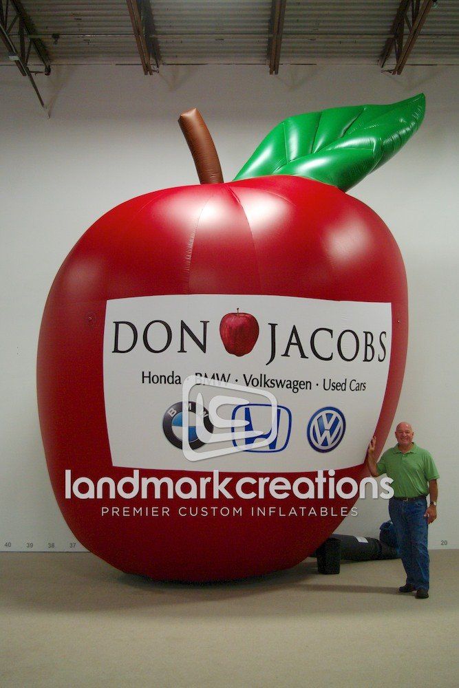 Don Jacobs Automotive Imports had their logo turned into a custom inflatable. 15 feet tall and used for retail promotions, this giant inflatable apple sure attracts attention.