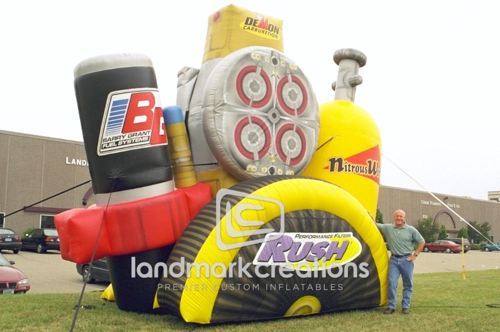 Automotive retailer Barry Grant had this custom-designed inflatable of auto parts made to drive traffic in store during retail promotions.