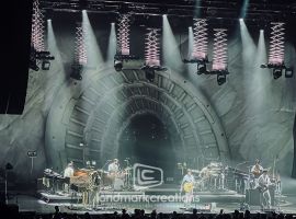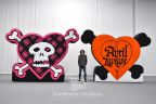 Designed for Visually Impressive Productions, this custom inflatable billboard was created for Avril Lavigne’s stage show in Las Vegas. Featuring striking heart-shaped designs, this dual-sided inflatable showcases black and pink skull artwork on one side and bold red branding with a white base on the reverse. Mounted on scenic carts for easy mobility, this inflatable stage prop elevates concert visuals, making it an unforgettable part of any stage production.