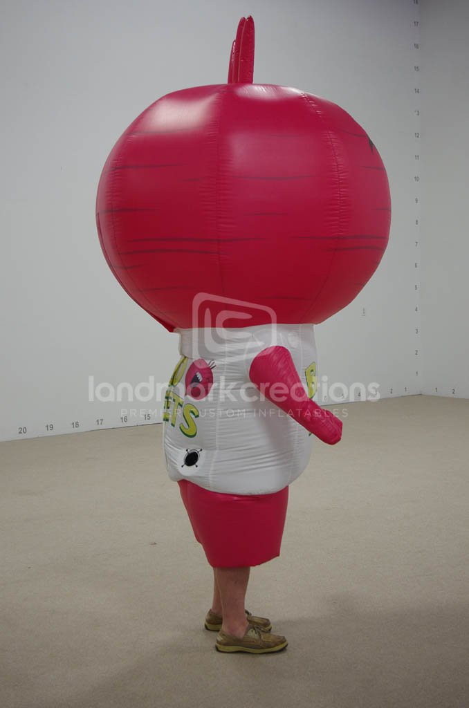 Want to get your kids excited about veggies? Let them play the Bad Beets card game. This inflatable costume brought Brad the Bad Beet to life at the Gen Con gaming show to promote the game's launch.
