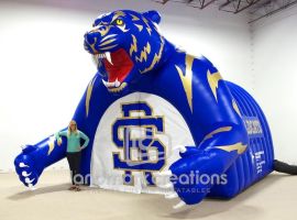 In an effort to boost team spirit, Bay High School developed a custom inflatable sports tunnel with piercing eyes and snarling teeth sure to intimidate! Custom football tunnels are proven to boost school spirit and increase ticket sales at high school, college & pro-level games.
