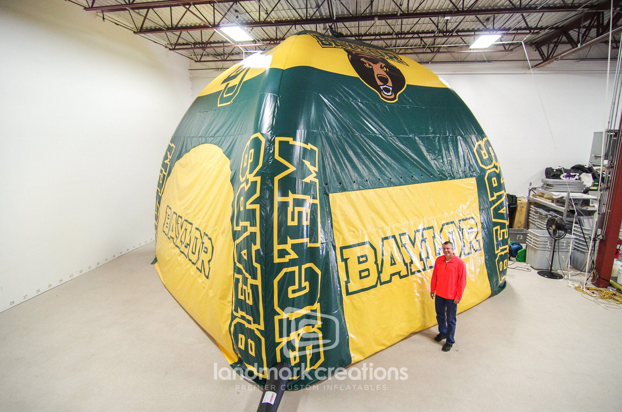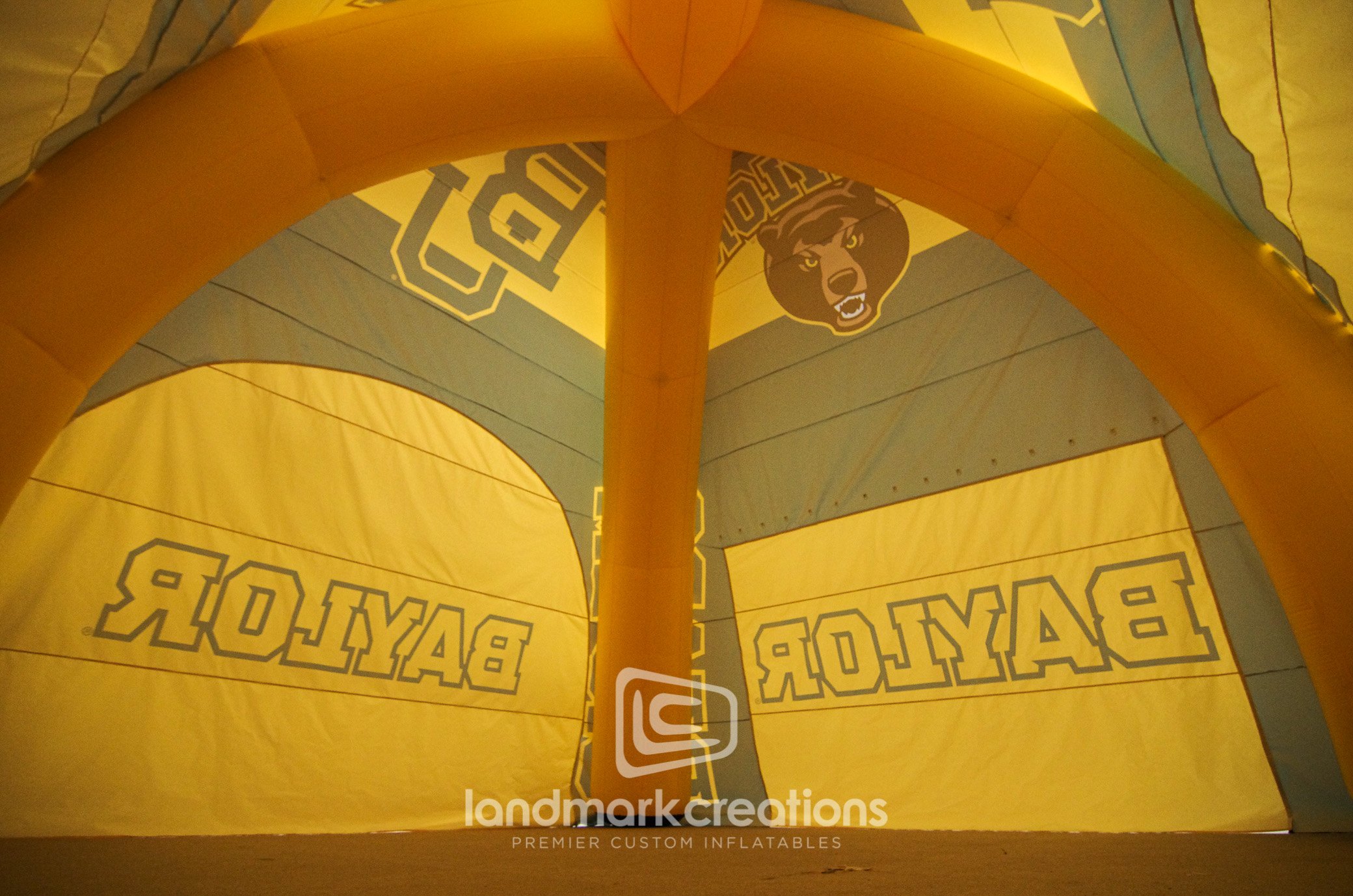 Tailgating is brought to a whole new level with this custom-built fan tent. Avid Baylor Bears fans commissioned Landmark Creations to design this roomy and secure game day tent to provide shelter from both sun and cold. They are the envy of sports fans everywhere they go!