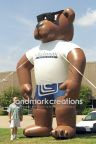 New and used car dealership, Buchanan Auto Park, strives to attract attention and increase sales during special promotions by inflating their giant bear mascot, complete with sunglasses!