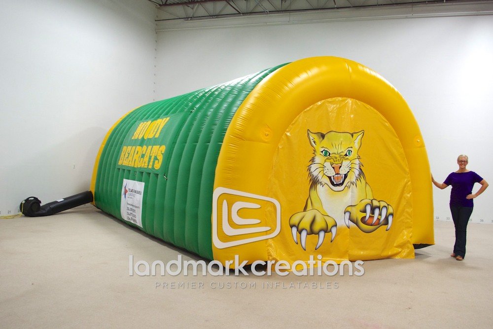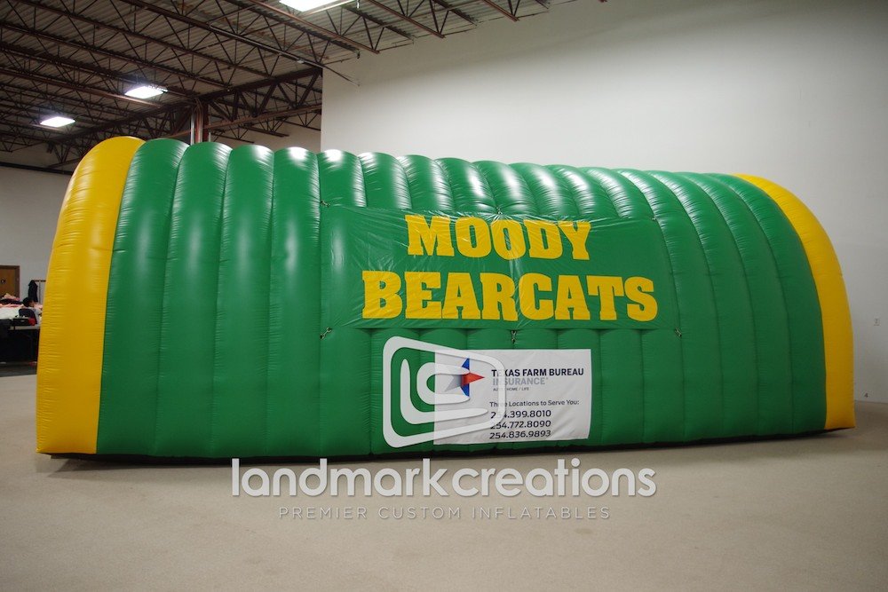 Moody High School uses their inflatable sports tunnel, a traditional tunnel with their school mascot printed on the break away doors, to excite fans at football games.