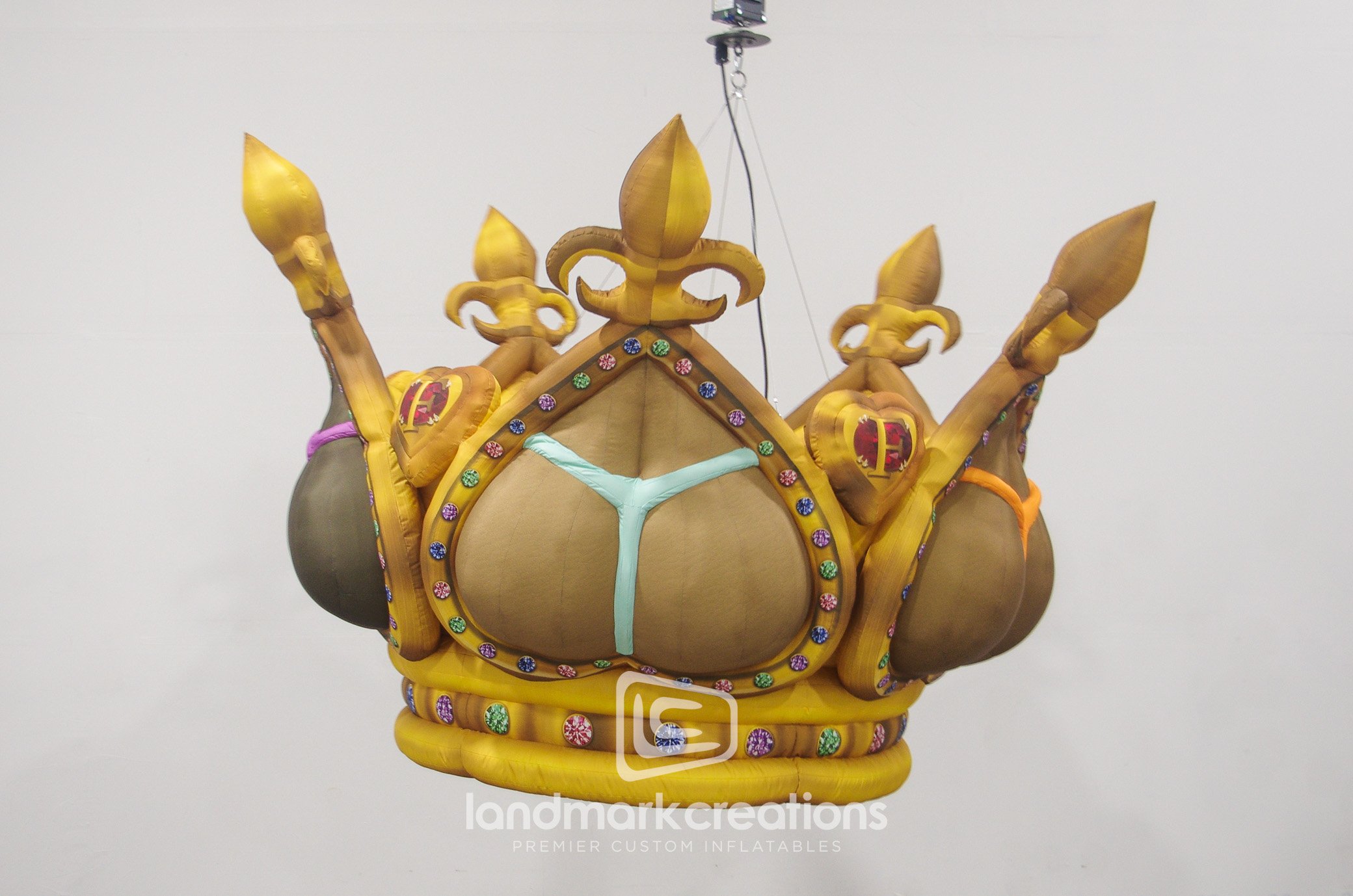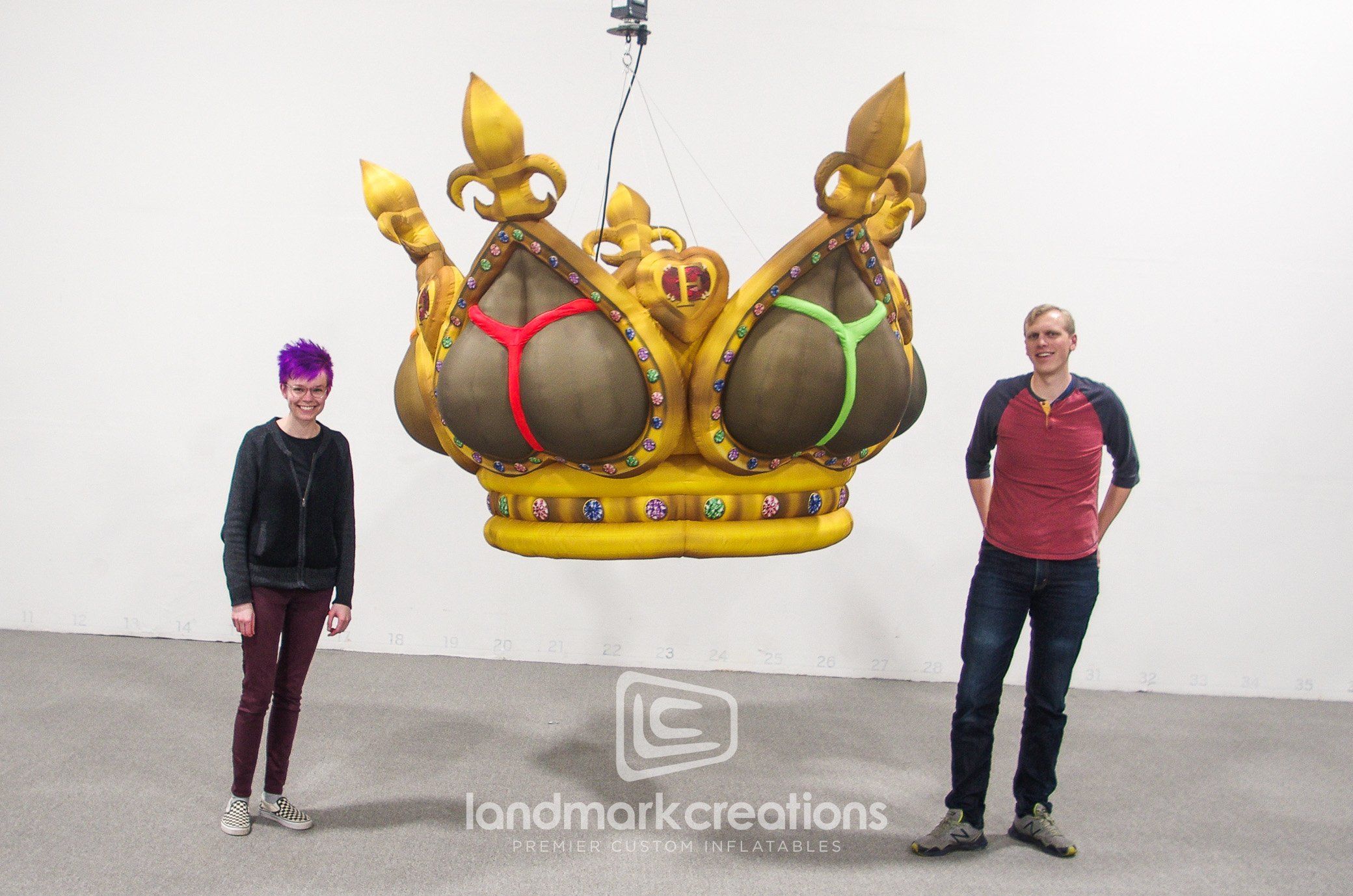 Big Freedia and The Suffers, two renowned music acts, performed at the House of Blues in New Orleans in 2020 and incorporated a custom inflatable crown booty as a set piece on stage. The custom inflatable crown, featuring vibrantly colors thongs and intricate details, added an element of zany grandeur and majesty to their performances, creating a unique and memorable visual experience for the audience. Following the success of the House of Blues performance, both Big Freedia and The Suffers incorporated the custom inflatable crown into their performances at various events and venues. The crown was easy to set up and take down, making it a convenient option for touring and traveling to different venues, as is the case with most custom inflatables.