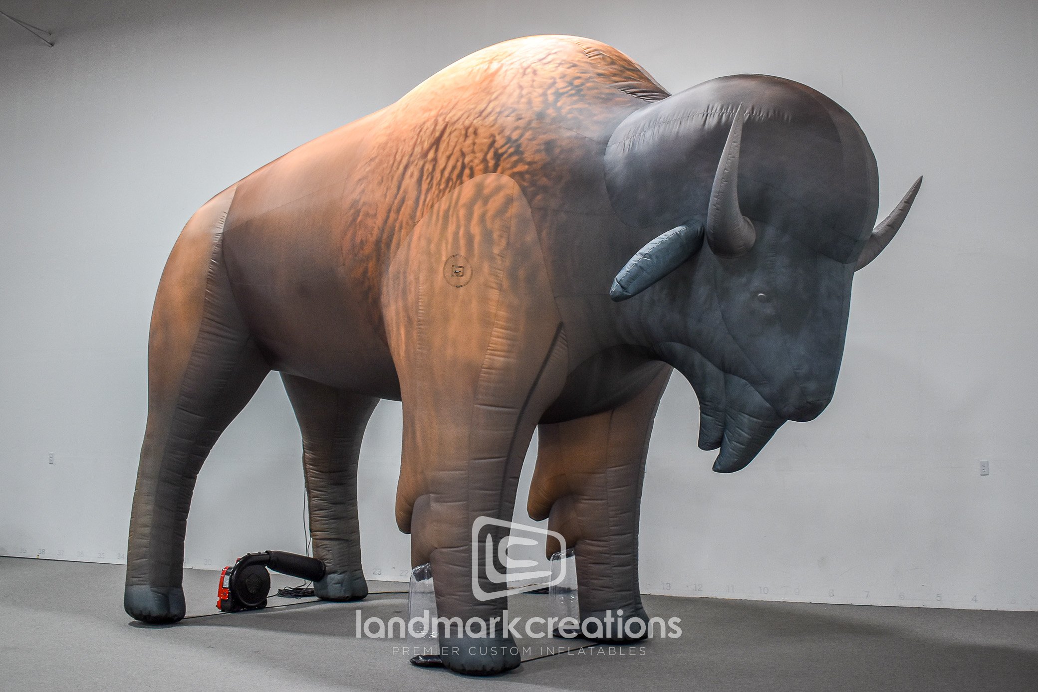 The Minesota Zoo included a giant inflatable bison display as part of its endangered species collection for their "Nature Illuminated" outdoor event. The Event featured over two-dozen custom inflatable animal replicas and light displays which attracted media attention and massive attendance to the zoo.